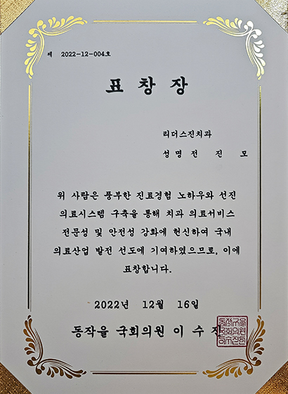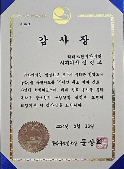 앞으로도 치과 진료 뿐만 아니라, 더 많은 이웃에게 건강과 희망을 전달하는 의료인이 되겠습니다.