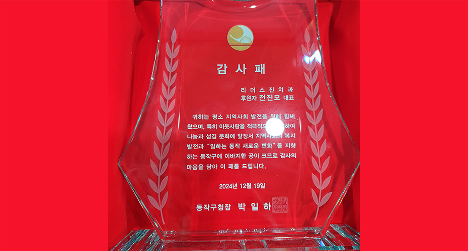 이러한 공로를 인정받아 여러 기관에서 감사패를 수여받았습니다.