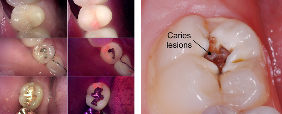 충치가 있는 경우, 붉은색으로 보여주기 때문에 육안으로 보기 힘든 충치들을 좀 더 정확하게 파악하고 치료할 수 있습니다.